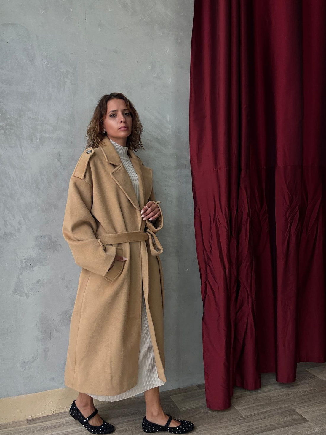 Long Manteau Oversize Avec Ceinture Ă La Taille