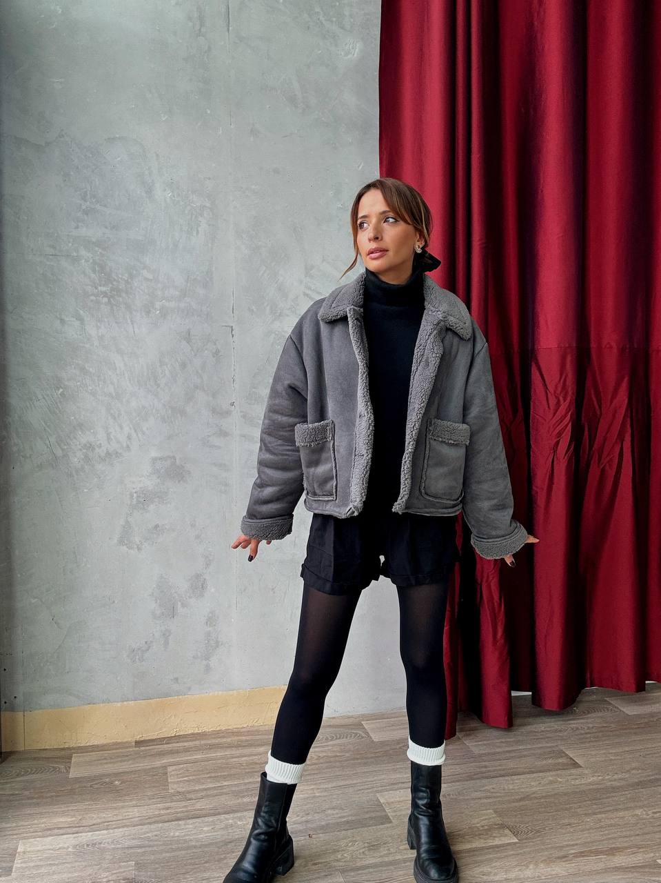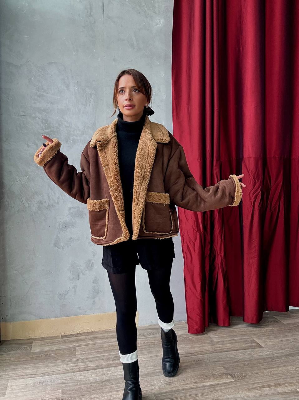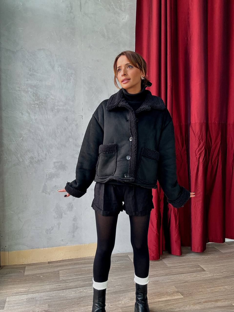 Veste Courte Doublée Effet Moumoute - Oversize