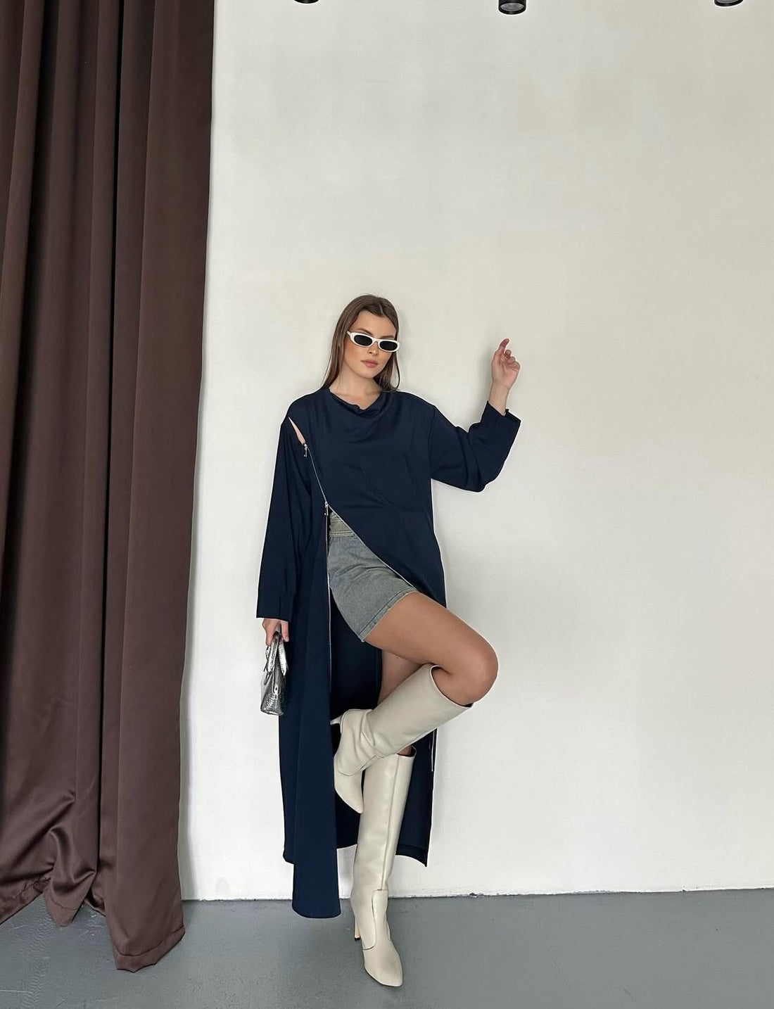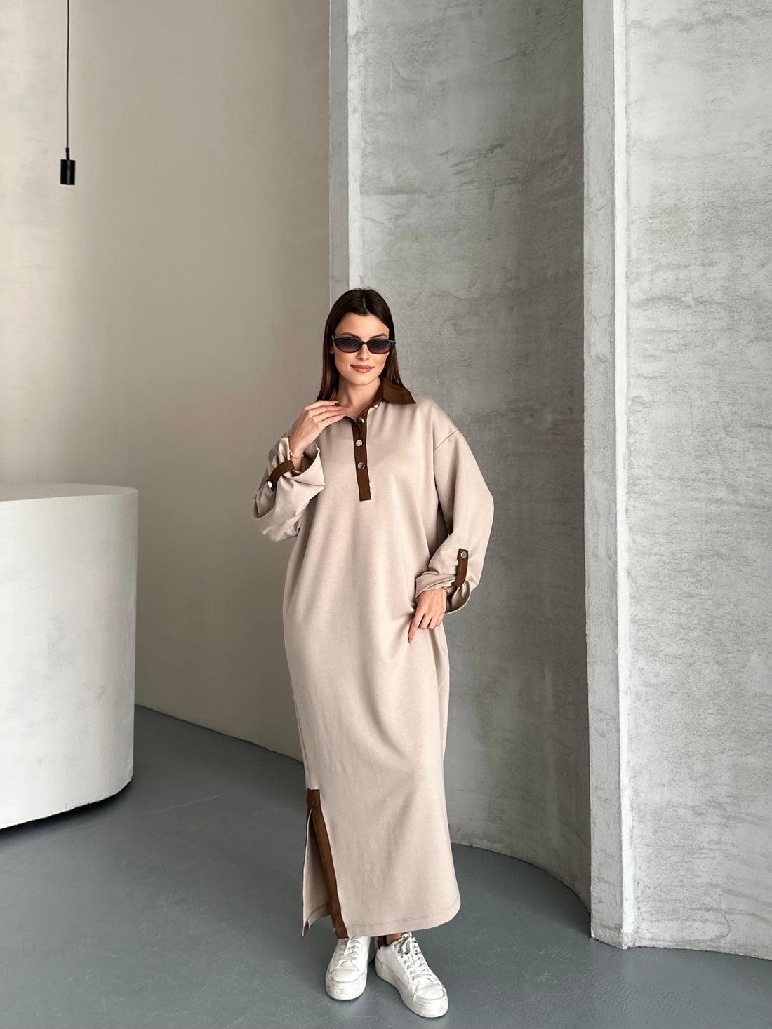Robe en maille mi-longue avec col à rabat et décolleté en V