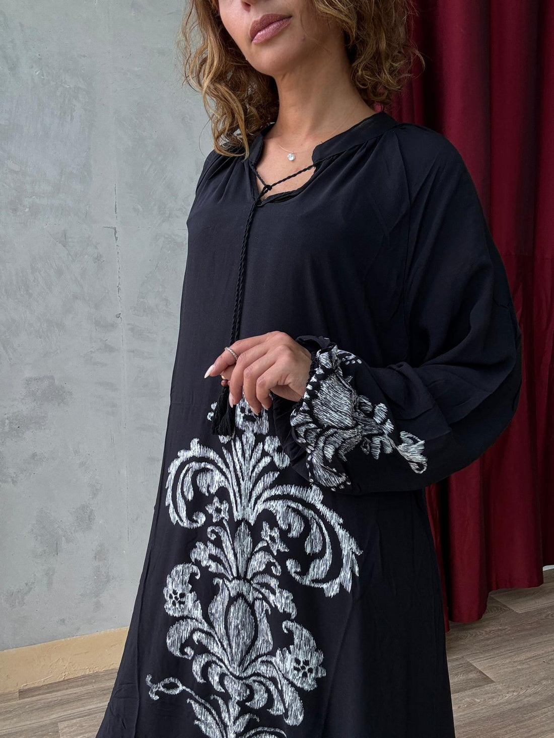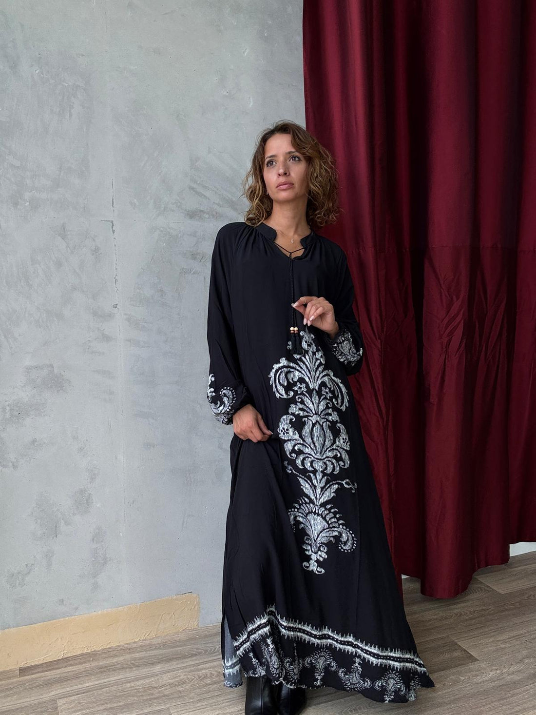 Robe longue fluide à motifs imprimés - Manches Longues - Noir