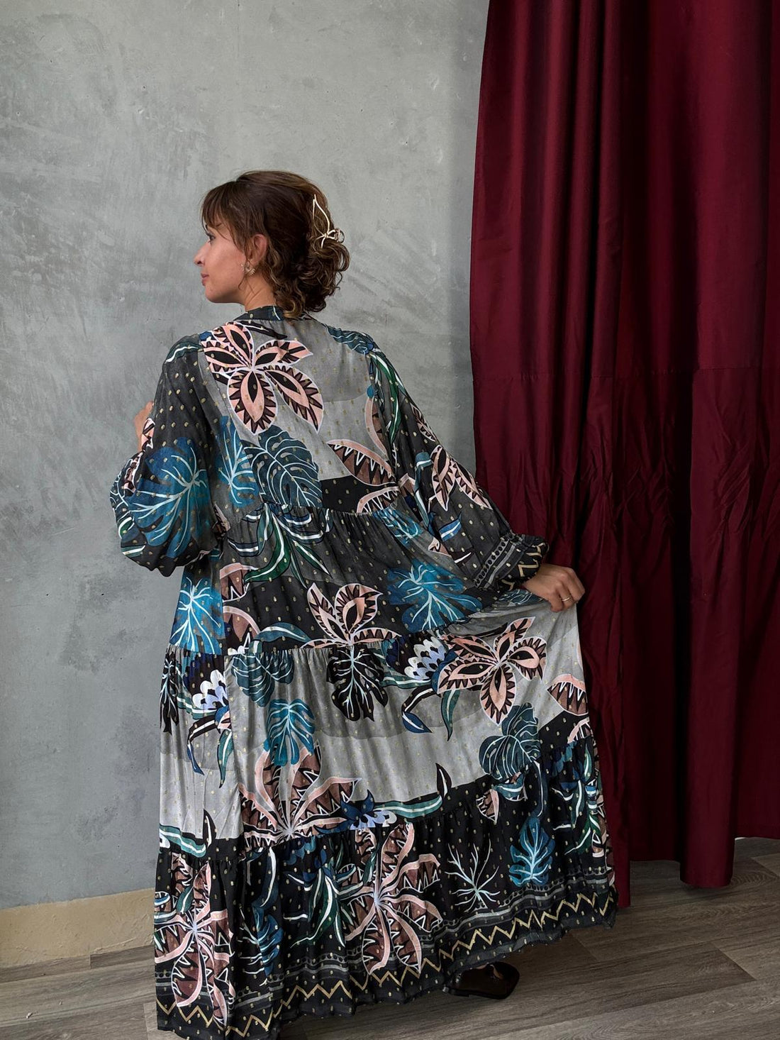 Robe Longue Fluide à Imprimés Tropicaux – Avec Viscose