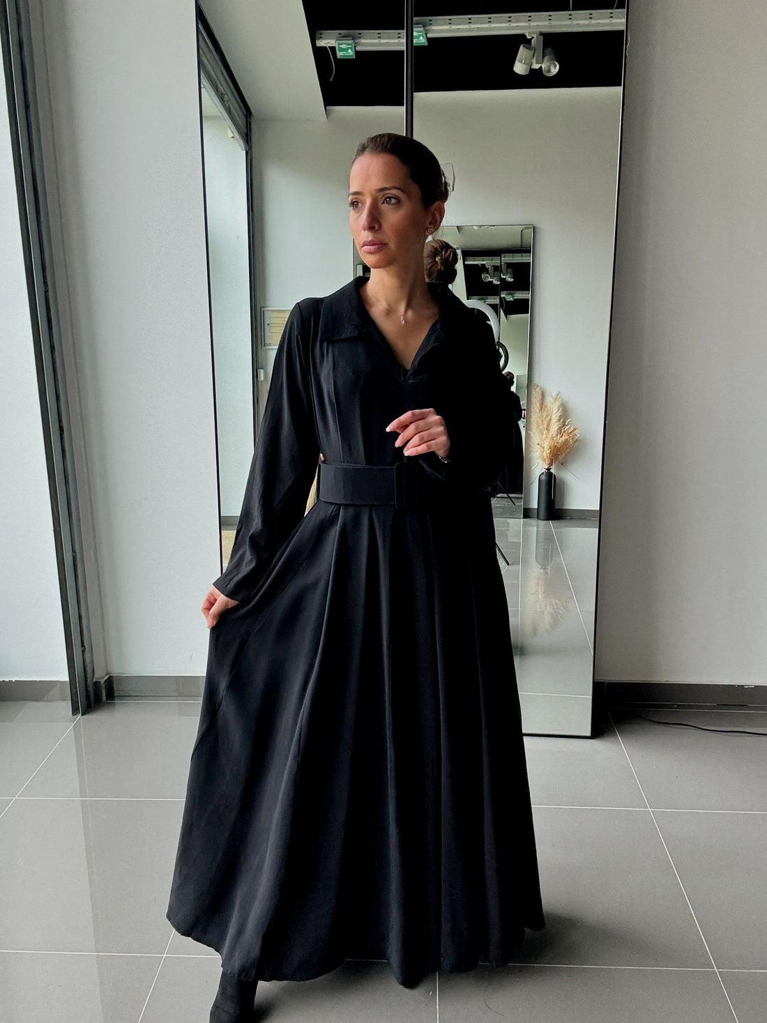 Robe chemise longue avec ceinture et poches - Noir ou Rose